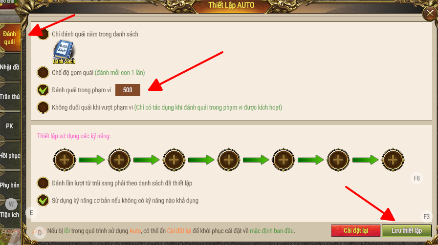cách cài đặt kỹ năng vào auto khi luyện cấp.